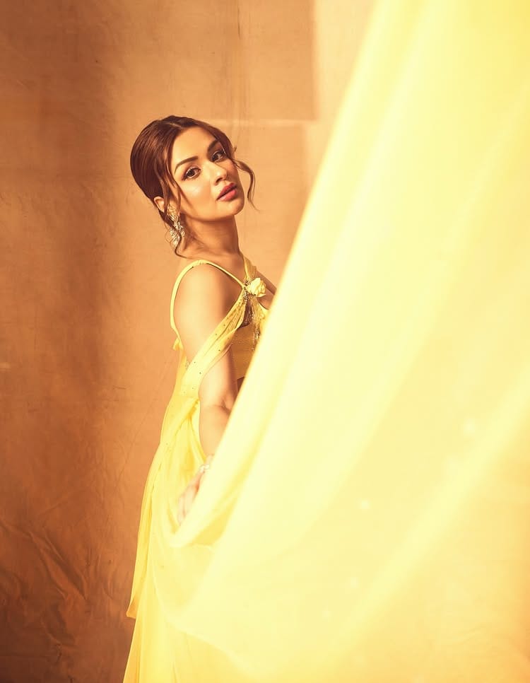 સ્ટાઈલિશ યલ્લો લૂકમાં અવનીતે ગ્લેમરસ પોઝ આપ્યા છે